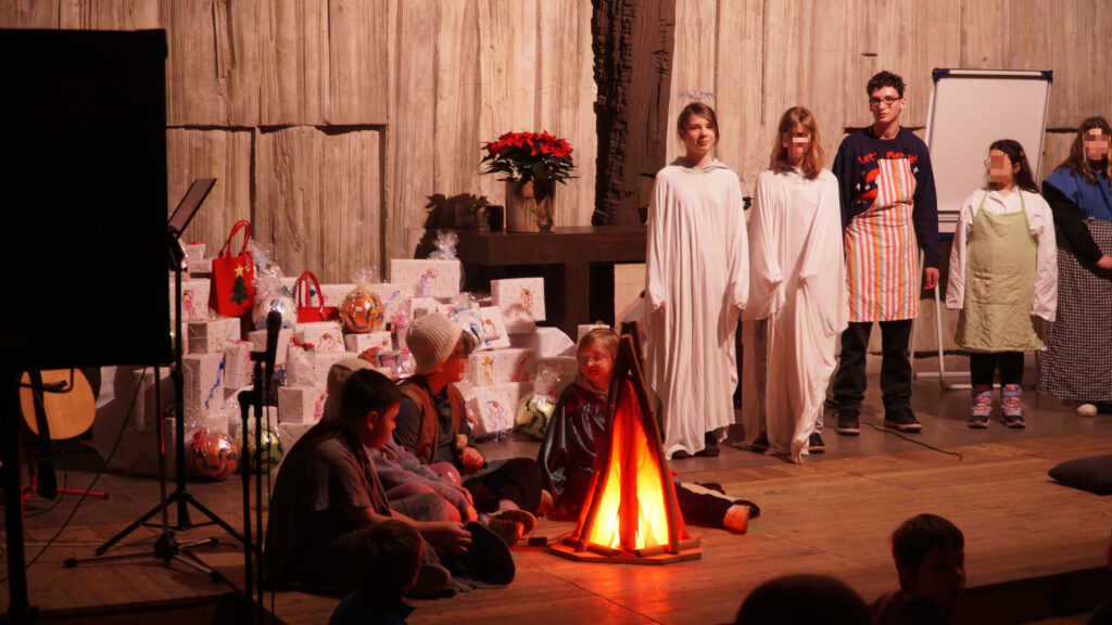 Vollgepackt mit Eindrücken und einem stolzen Lächeln blicken wir, Josua und Adrian, auf unsere Praktikumszeit im Haus Kinderland zurück. Der krönende Abschluss war die Weihnachtsfeier in der Bonhoeffer-Kirchgemeinde. Mit 109 Gästen, darunter 64 erwartungsvolle Kinder und Teenager, sowie 12 engagierten Mitarbeitern war der Saal gefüllt. Wir waren dabei für echte Höhepunkte verantwortlich: Während im Vorfeld mit viel Liebe "Sockenschneemänner" gebastelt wurden, die nun den Festsaal schmückten, bewiesen die Jugendlichen an der "Weihnachtsbar" wahre Gastgeberqualitäten. Eigenverantwortlich schenkten sie Punsch aus und sorgten für strahlende Gesichter. Zwischen Kaffeetrinken, Krippenspiel und Andacht war es für uns das Schönste zu sehen, wie die Kids von passiven Zuschauern zu aktiven Gestaltern wurden. Wir nehmen die Gewissheit mit: Teilhabe ist ein tolles Geschenk.